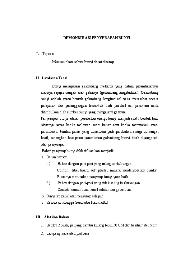 Sifat bunyi • bunyi dihasilkan oleh getaran sesuatu bahan • dapat dipindahkan melalui medium • dapat bergerak melalui pepejal, cecair dan gas • bunyi tidak dapat dipindahkan melalui vakum • bunyi boleh dipantulkan atau diserap apabila terkena pada sesuatu permukaan. Tujuannya untuk memperkecil energi bunyi supaya tidak sampai merambat keluar ruangan. Dua contoh benda yang dapat memantulkan bunyi yaitu blog sebutkan 5 contoh benda peredam bunyi. Frekuensi bunyi yang dapat didengar oleh telinga manusia. Formula dapat digunakan untuk mendemonstrasikan ini. Selain itu, bunyi juga dapat dipantulkan dan dapat diserap. Pemantulan dan penyerapan bunyi bunyi dapat dipantulkan dan diserap. Karena jika bunyi itu mengenai benda yang lunak, maka bunyi akan diserap oleh permukaan yang lunak bukan dipantulkan. Dan berikut ini contoh sumber bunyi antara lain;