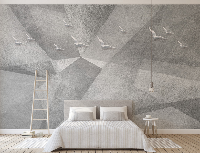Pengaplikasian Desain Cat Kamar Geometris Bisa Dengan Memasang Wallpaper.